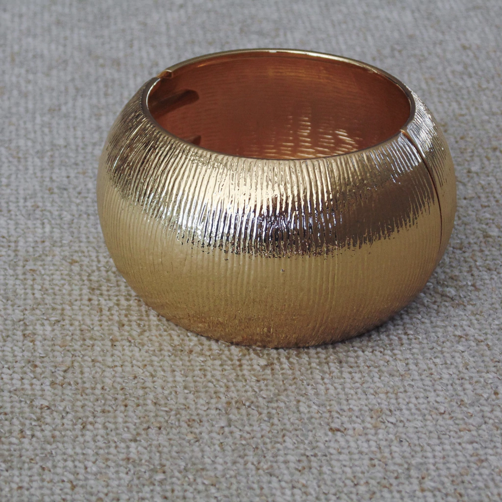 Bracelete chunky texturizado, fechamento abre-e-fecha redondo.