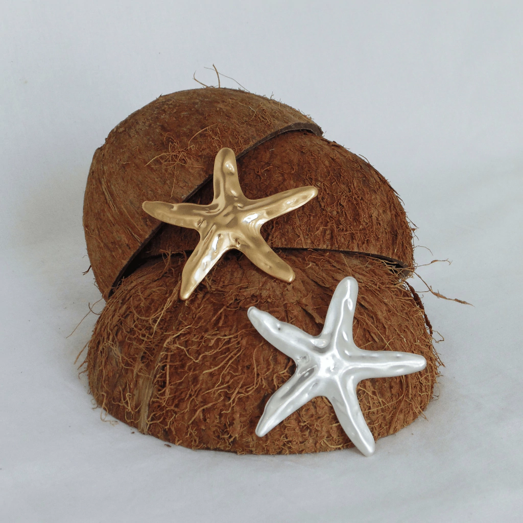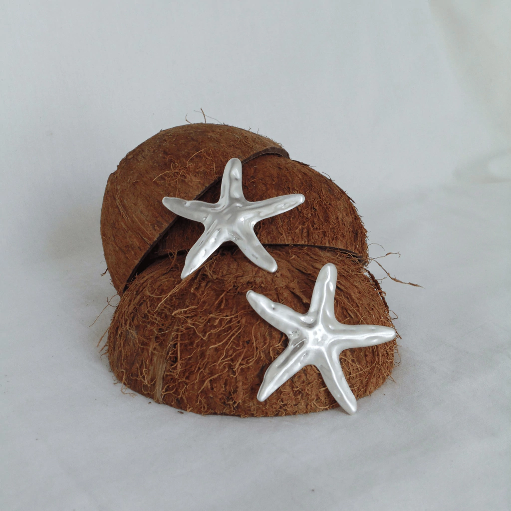 Brinco em formato de estrela do mar, martelado e em banho fosco.